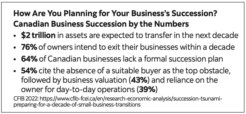 Even if you are years away from transitioning your business, understanding its value today is important. Knowing your business’s worth not only sets realistic expectations, but also supports strategic decisions around growth, succession, and family planning. In fact, studies continue to suggest that business valuation is one of the top obstacles in business succession planning (see inset).